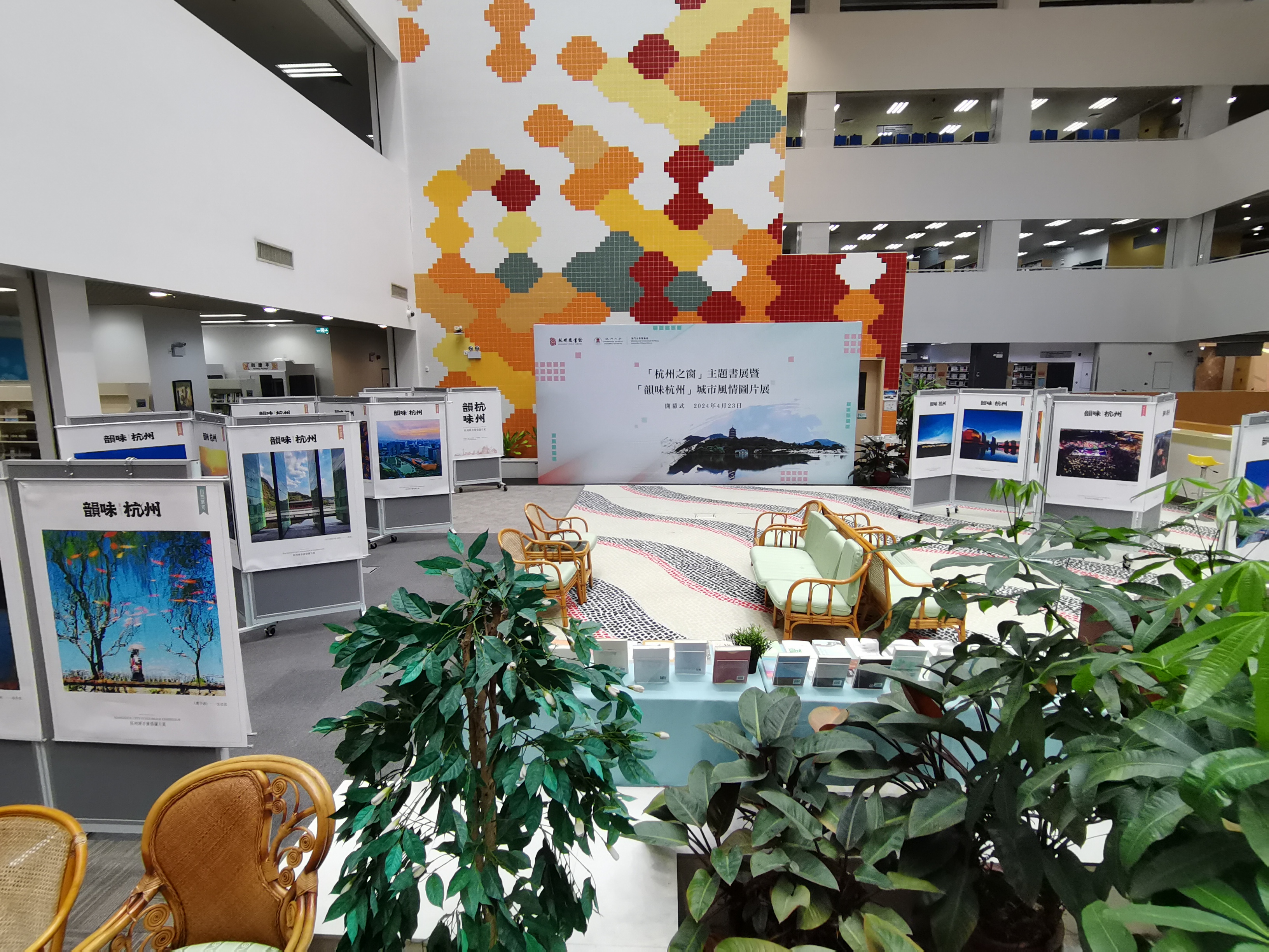 On 19 April 2024, with the guidance and support of the Hangzhou Foreign Affairs Office and the Hangzhou Municipal Bureau of Cultural, Radio, TV and Tourism, the "Window of Hangzhou" Themed Book Exhibition and "Hangzhou Feel" Urban Image Exhibition jointly organized by the University of Macau Library and the Hangzhou Public Library were grandly opened at the sky garden of the University of Macau Library. University Librarian of the University of Macau (UM) Wu Jianzhong, Assistant University Librarian Billy Leung, Professor of UM Faculty of Law and Head of Public Administration Training Centre Shui Bing, Professor of UM Faculty of Arts and Humanities and Vice Chairman of the Zhejiang University of Macau Alumni Association Gong Gang and other guests attended the opening ceremony.