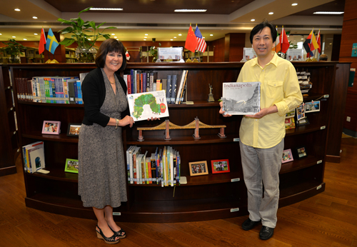 During the First Lady’s visit, she sent Hangzhou Public Library a book entitled Hoosiers, A New History of Indiana, and a music recording which highlights the Indianapolis Symphony Orchestra's performance of Nico Muhly Cello Concerto as gifts on behalf of Indianapolis Public Library. These gifts were all selected by Jackie Nytes, director of Indianapolis Public Library. Mr Chu also sent the Collection and Documentary of the West Lake to Indianapolis Public Library as a gift, which reflects the history, culture and the people of Hangzhou.