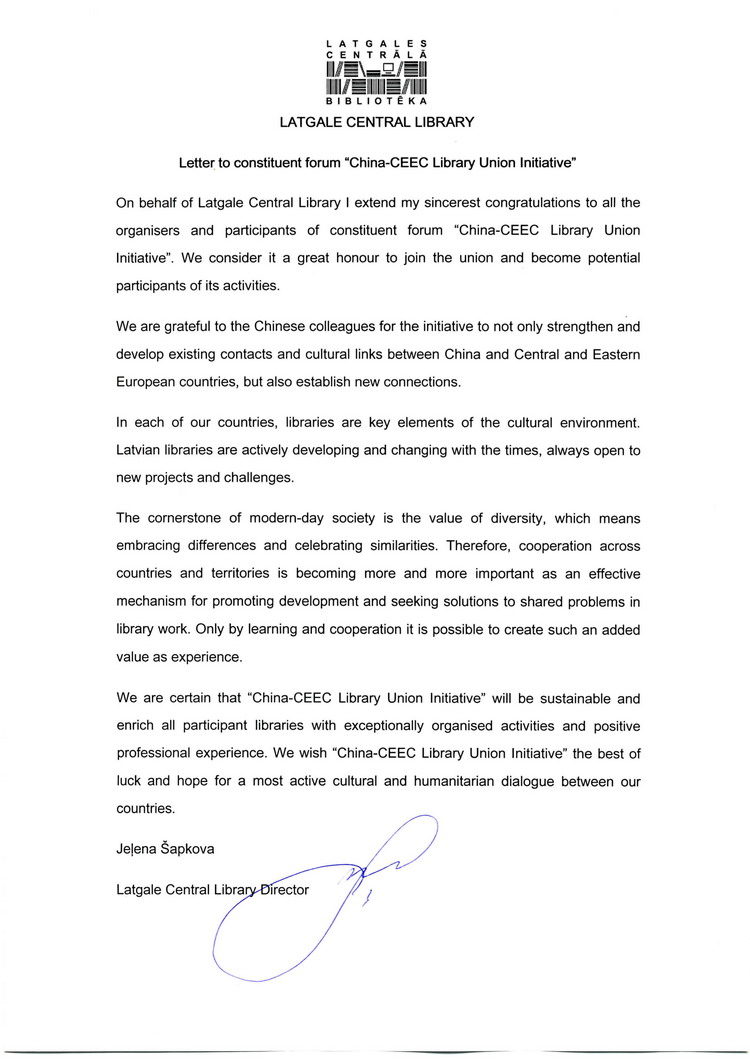 Videos of congratulation from Belgrade City Library, National Institution University Library St.Kliment Ohridski, Gabriele Petkevicaite-Bite Public Library, Library of Hungarian Academy of Sciences and Poland National Library, as well as letters of congratulation from Latgale Central Library, National Institution University Library St.Kliment Ohridski, Povilas Visinskis Public Library, Sofia City Library and the Matica Srpska Library were broadcasted during the ceremony.