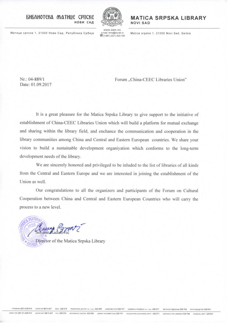 By report, “The Ist China-CEEC Libraries Union Library Director’s Forum 2018” has already been included in the “Cultural Cooperation Plan between China and Central and Eastern European Countries for the Years 2018-2019”, where the representatives will sign the Statement on the Establishment of China-CEEC Libraries Union, and the brainstorming meeting will be held in the forum which will focus on the forefront of the international library community.