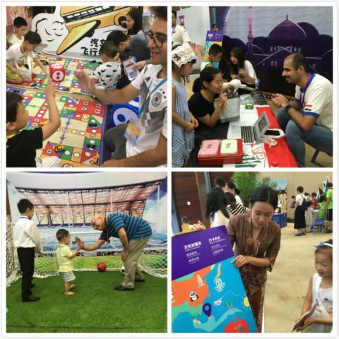 Saulo and Henry, both from Brazil, were in charge of the Brazil booth by playing mini soccer with kids. They were pleased to see such an international event for the bravery, confidence, and ambitious showed by kids in Hangzhou when they meet people speaking in different accents.