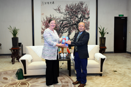 Mr. Lu Xiaolong and Ms. Wendy Dorman-Smith had a cordial talk. Mr. Lu Xiaolong recognized the achievements of cultural exchanges between the Hangzhou Public Library and the Boole Library in University College Cork over the past years and hoped that there would be more extensive cultural exchanges between two sides. Ms. Wendy Dorman-Smith attached great importance to the cultural cooperation between Ireland and the beautiful city Hangzhou.