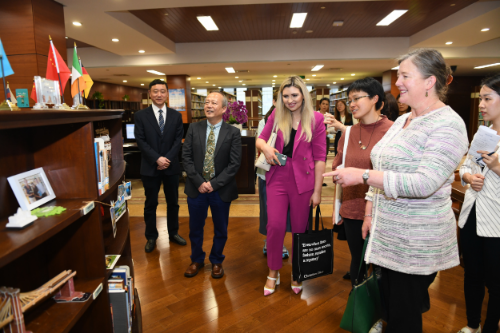 On 18 May, Ms. Wendy Dorman-Smith, Consul-General of Consulate General of Ireland in Shanghai, and Ms. Alison Meagher, Deputy Consul-General of the Consulate visited the Hangzhou Public Library. Mr. Lu Xiaolong, Deputy Director of Hangzhou Municipal Bureau of Culture, Radio, TV and Tourism warmly received the guests. Zhang Yawen from Foreign Affair Office, Liu Dong, the director of the library, and Hu Fang, the deputy director of the library were also present at the reception.