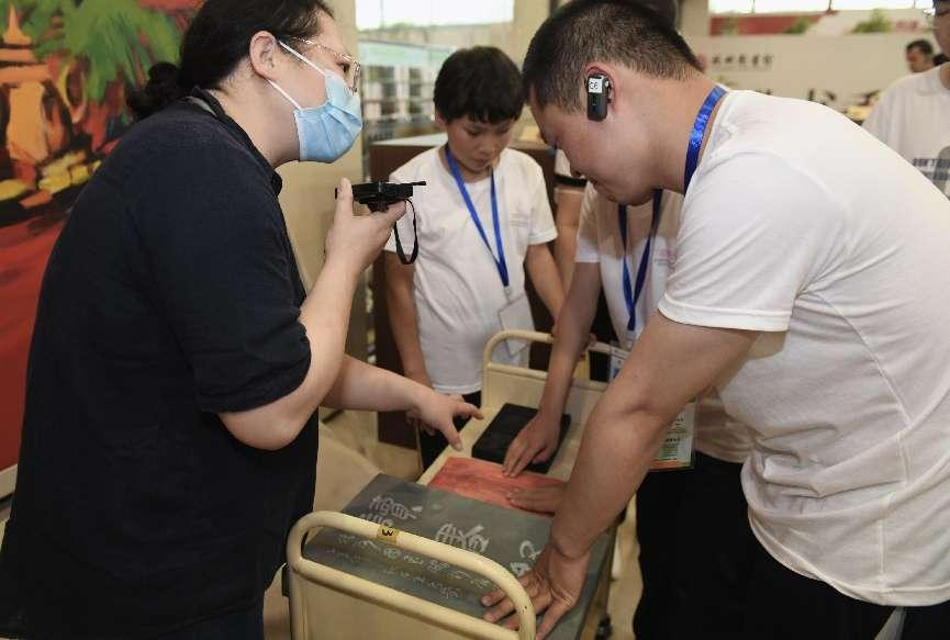 They also explored three tactile woodblocks that represented different aspects of Chinese civilization. Jin Xinxiu, a librarian from the Special Literature Center, explained the significance of the woodblocks to the children. “The first one is the statue of Confucius, the second one is the Plum Blossom Portrait Manual, China’s first woodcut painting manual specifically depicting the various moods of plum blossoms, and the third one is a stone tablet engraved with sentence as Reading is Good. The woodblock printing technology has taken on the responsibility of spreading civilization for a long time”, she said.