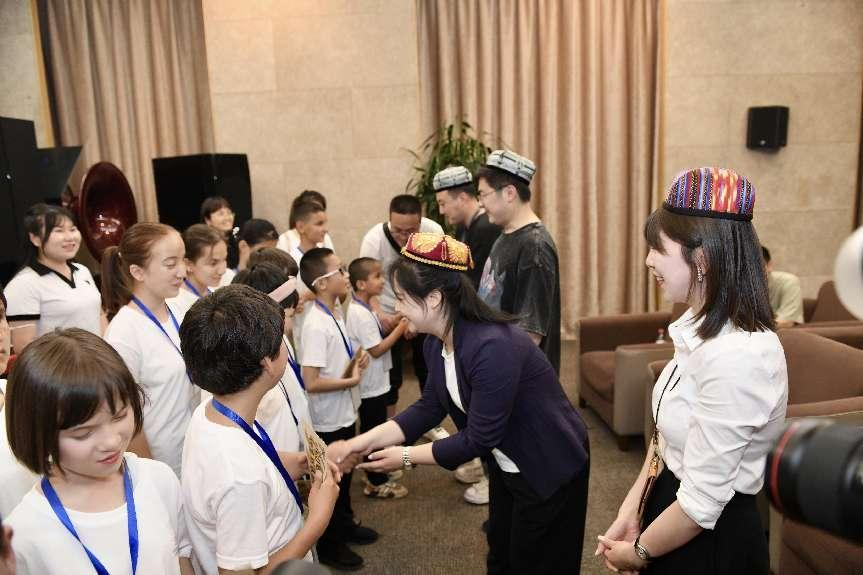 At the end of the event, Hangzhou Public Library presented listening resources to the children as gifts. The children also gave Xinjiang Little Flower Hats to the young librarians as tokens of gratitude.