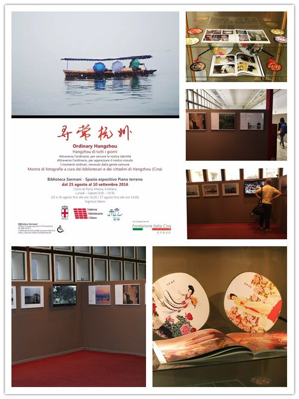The Milan Public Library System is a network that links 24 branch libraries, the bookmobile Bibliobus and the central library Sormani. It provides citizens of all ages with access to a wide range of high-quality and updated collections and information resources. Housed in a 17th century historical building, in the centre of the city, the Biblioteca Sormani is the central public library of Milan. ORDINARY Hangzhou opened in the Biblioteca Sormani on August 25, and lasted for 15 days, at least 4500 people visited the exhibition. It was set up near the main entry of the library in order to ensure that each reader can enjoy the exhibition.