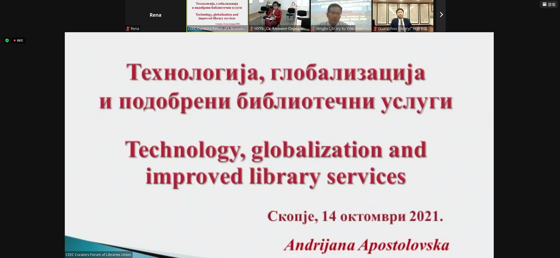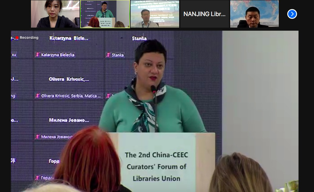 From October 13 to 14, 2021, the 2nd China-CEEC Curators’ Forum of Libraries Union was held online, hosted by the PI City Library "Braka Miladinovci" Skopje. The theme of the forum was "Libraries as essential in challenging times offer meaningful connectivity: New approaches to library design". 59 member libraries from China and Central and Eastern European countries and 10 non-member libraries including Zhejiang Library, Shenzhen Library and Xiamen Library participated.