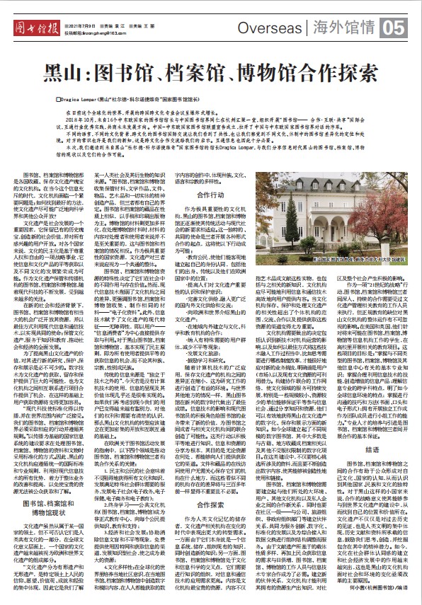 Cooperation between libraries, archives and museums helps to achieve a unique public view of each country, thus encouraging the development of awareness of the specifics of others. For small countries such as Montenegro, the strategic definition of such an approach enables recognition and participation in the construction of world cultural heritage. Therefore, it is necessary to create new mutual partnerships, but also at the community level - with companies, tourism organizations, NGO sector, etc. Only in this way can cultural institutions, from the funds they possess, produce knowledge that will actively influence the life of the community and society as a whole.