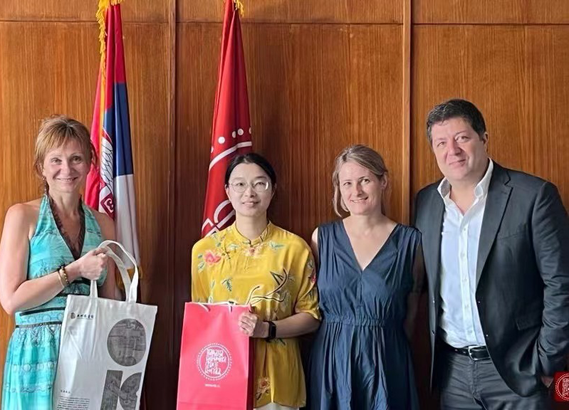 秘书处胡芳副秘书长与塞尔维亚国家图书馆德拉加纳·米卢诺维奇副馆长、塔玛拉·布蒂根·武卡杰副馆长、德拉甘·普雷希奇副馆长就第四届论坛办会准备进行交流讨论