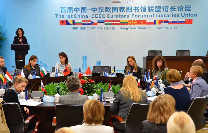 由文化和旅游部国际交流与合作局、浙江省文化厅、杭州市人民政府指导,杭州市文化广电新闻出版局主办、杭州图书馆承办的首届中国——中东欧国家图书馆联盟馆长论坛在杭州图书馆举行。本届论坛聚焦“图书馆——合作·互联·共享”这个主题,围绕“图书馆如何推动联合国2030可持续发展议程”“图书馆和全民阅读”“图书馆与文化遗产保护”“未来图书馆员-变迁、素养、技能”等议题展开广泛深入的学术交流,共谋促进中国-中东欧国家图书馆联盟长效发展的对策。