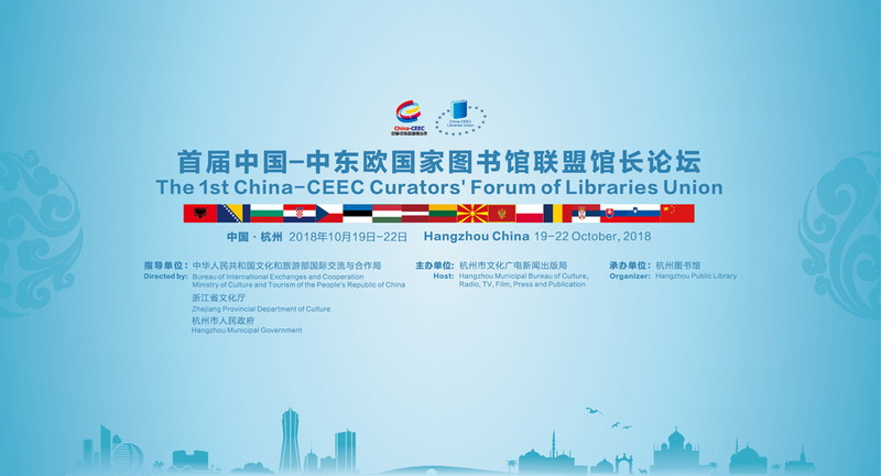 由中华人民共和国文化和旅游部国际交流与合作局、浙江省文化厅、杭州市人民政府指导,杭州市文化广电新闻出版局主办、杭州图书馆承办的首届中国—中东欧国家图书馆联盟馆长论坛于2018年10月19日-10月22日在杭州图书馆召开。