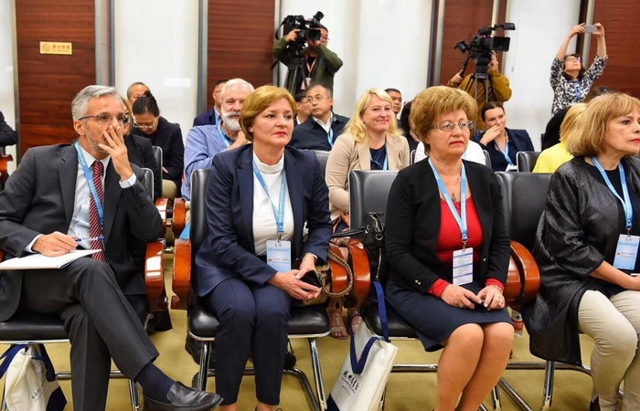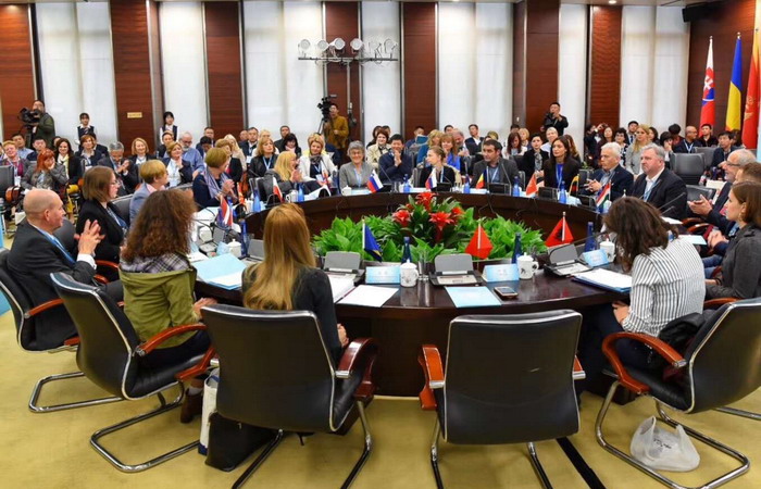 2018年10月20日上午,中国-中东欧国家图书馆联盟馆长论坛举行联席会议,中国-中东欧参会代表磋商《中国—中东欧国家图书馆联盟成立宣言》《中国—中东欧国家图书馆联盟2019-2020年行动计划》。