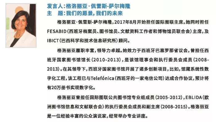 国际图联主席格洛丽亚·佩雷斯·萨尔梅隆